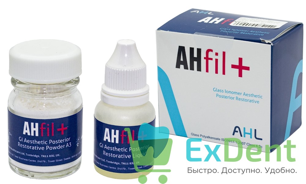 Купить AHfil+ (Ашфил +) A3 - цемент стеклоиономерный (Аналог Фуджи 9) (15 г + 7 мл) произведенный компанией AHL вы можете в ExDent.ru по цене 2 910руб.