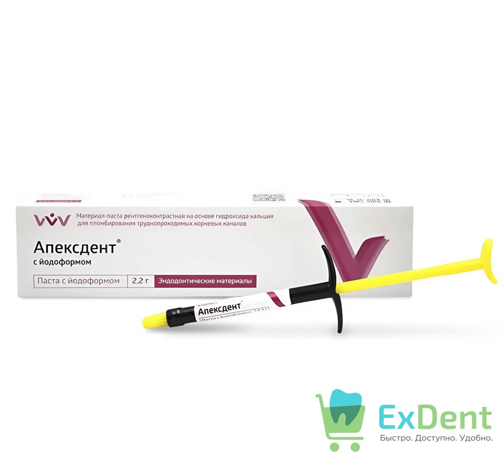 Купить Апексдент с иодоформом - материал для пломбирования и лечения корневых каналов (2,2 г) произведенный компанией ВладМиВа вы можете в ExDent.ru по цене 360руб.