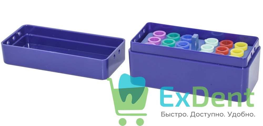 Купить Бокс (подставка) для гуттаперчи, на 18 ячеек, (107 х 49 х 55 мм) автоклавируемый произведенный компанией вы можете в ExDent.ru по цене 480руб.