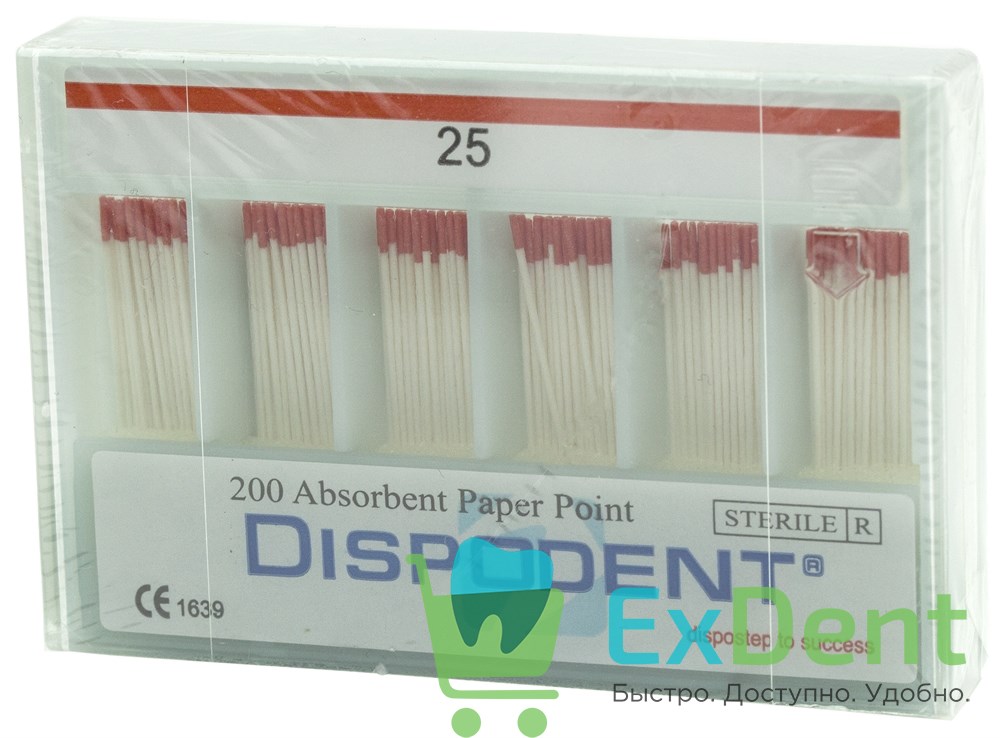 Купить Бумажные штифты 02 №25 Dispodent - для удаления влаги в канале (200 шт) произведенный компанией Dispodent вы можете в ExDent.ru по цене 200руб.