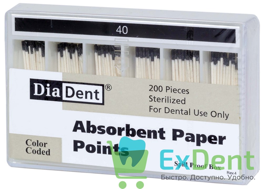 Купить Бумажные штифты 02 №40 DiaDent для удаления влаги в канале (200 шт) произведенный компанией DiaDent вы можете в ExDent.ru по цене 0руб.