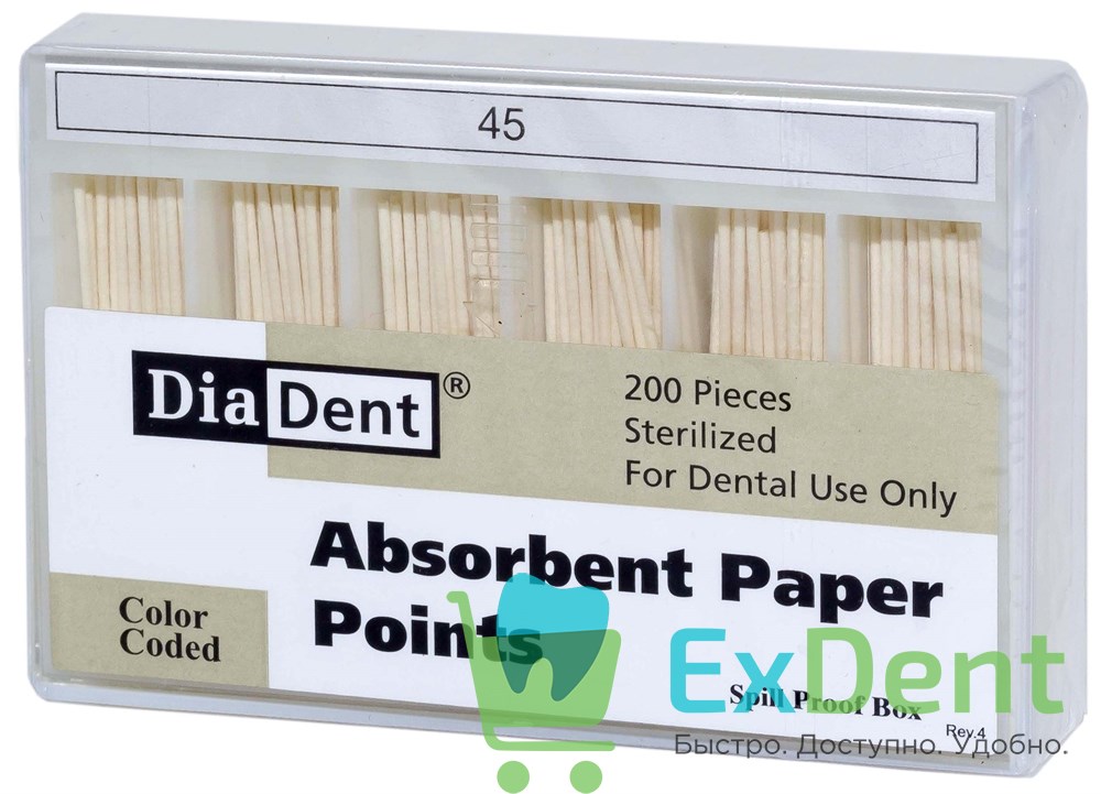 Купить Бумажные штифты 02 №45 DiaDent для удаления влаги в канале (200 шт) произведенный компанией DiaDent вы можете в ExDent.ru по цене 0руб.