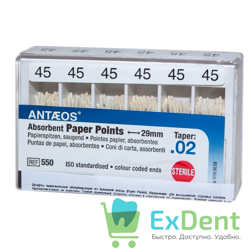 Купить Бумажные штифты 02 №45 VDW - для удаления влаги в канале (200 шт) произведенный компанией вы можете в ExDent.ru по цене 0руб.
