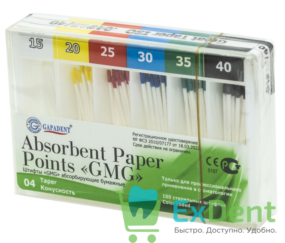 Штифты GMG бумажные абсорбирующие бумажные штифты для подготовки (высушивания) корневых каналов зубов при эндодонтическом лечении.