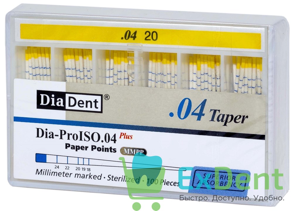 Купить Бумажные штифты 04 №20 DiaDent для удаления влаги в канале (100 шт) произведенный компанией DiaDent вы можете в ExDent.ru по цене 0руб.