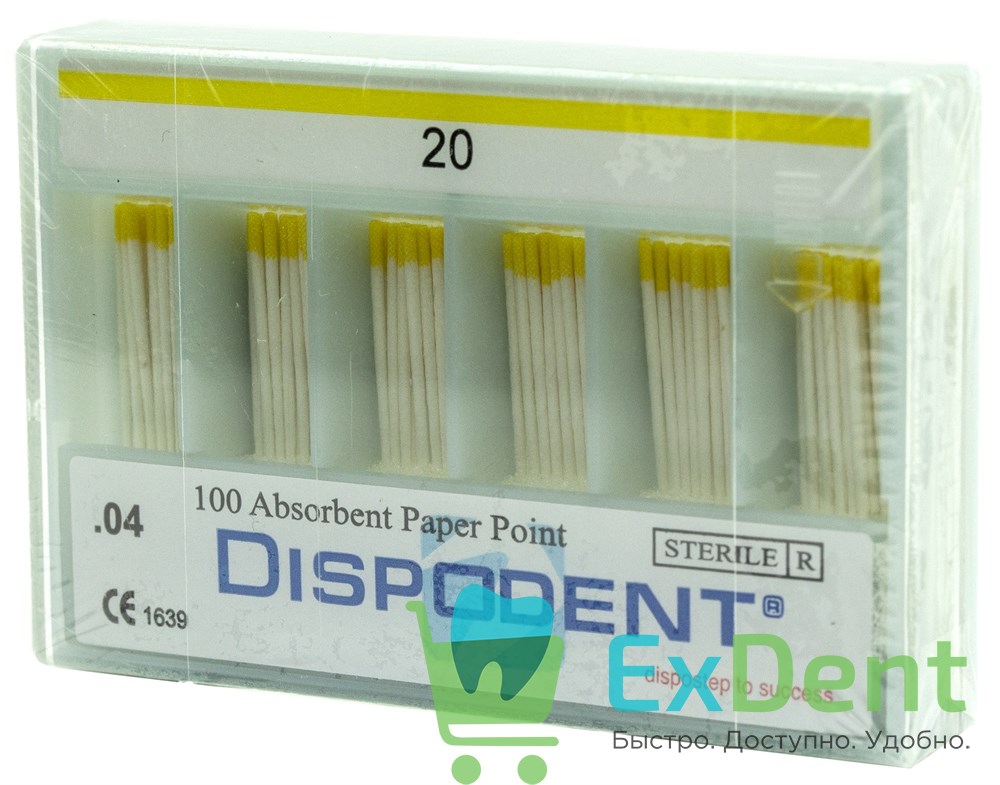 Купить Бумажные штифты 04 №20 Dispodent для удаления влаги в канале (100 шт) произведенный компанией Dispodent вы можете в ExDent.ru по цене 320руб.