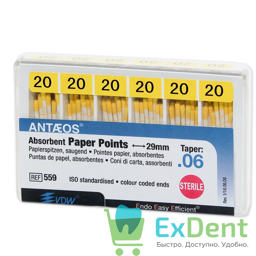 Купить Бумажные штифты 06 №20 VDW - для удаления влаги в канале (120 шт) произведенный компанией вы можете в ExDent.ru по цене 0руб.
