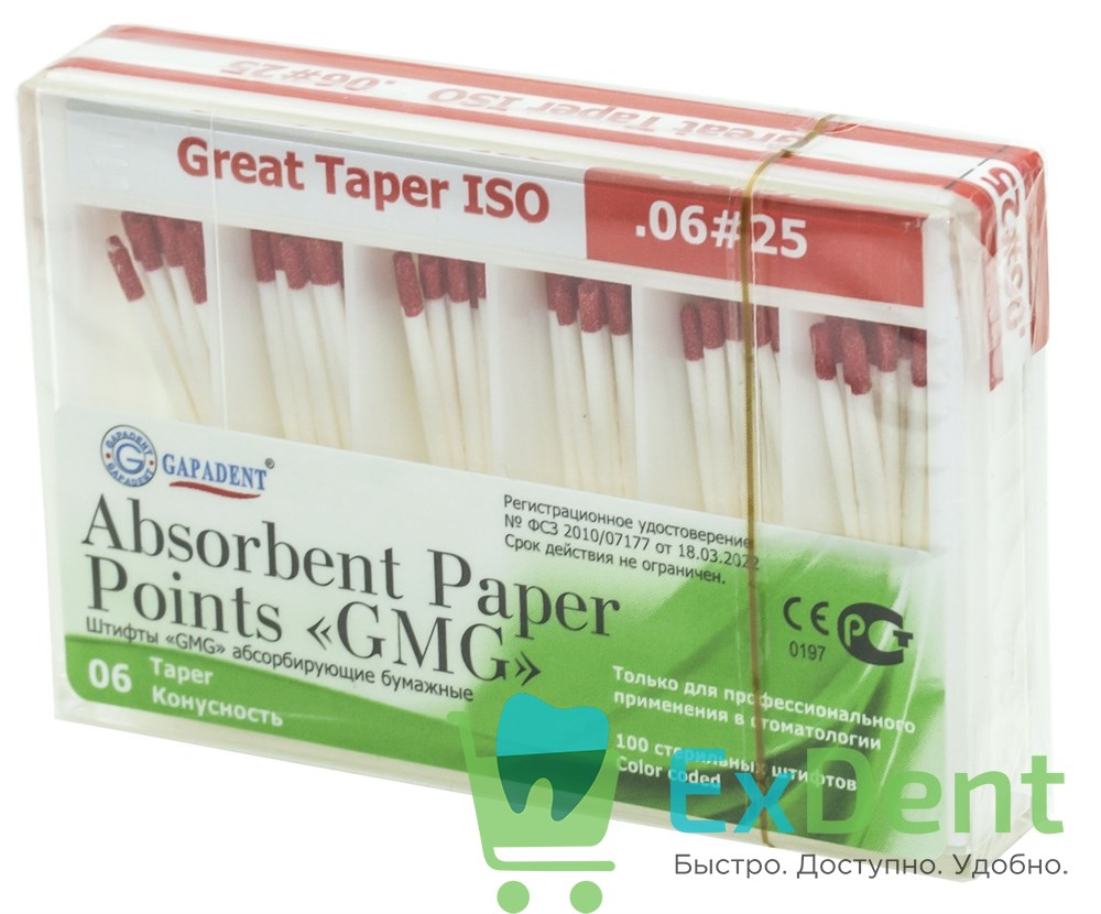 Штифты GMG бумажные абсорбирующие бумажные штифты для подготовки (высушивания) корневых каналов зубов при эндодонтическом лечении.