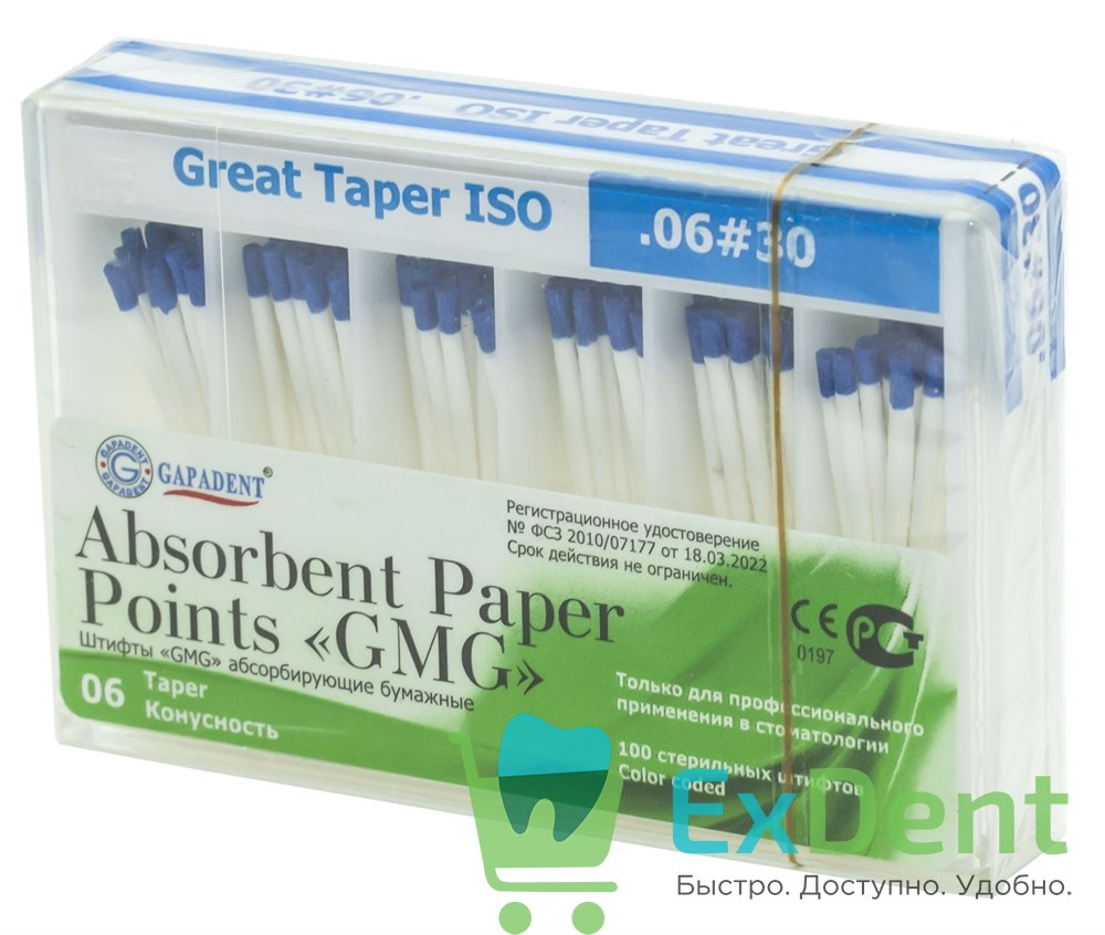 Бумажные штифты 06 №30 GMG - для удаления влаги в канале (100 шт)