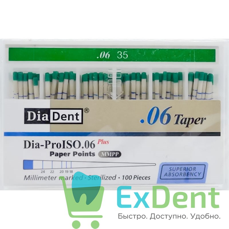 Купить Бумажные штифты 06 №35 Dispodent для удаления влаги в канале (100 шт) произведенный компанией Dispodent вы можете в ExDent.ru по цене 300руб.