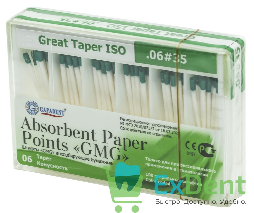 Купить Бумажные штифты 06 №35 GMG - для удаления влаги в канале (100 шт) произведенный компанией GMG вы можете в ExDent.ru по цене 0руб.
