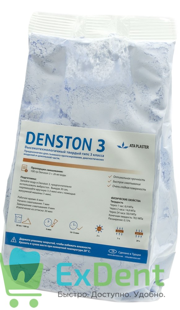 Купить Denston 3 - гипс артикуляционный 3 класса голубой (1 кг) произведенный компанией ATA PLASTER вы можете в ExDent.ru по цене 0руб.
