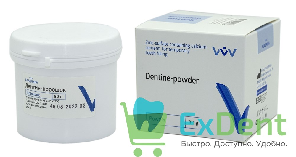 Купить Дентин-порошок - для временного пломбирования и гермитизации полости зуба (80 г) произведенный компанией ВладМиВа вы можете в ExDent.ru по цене 220руб.