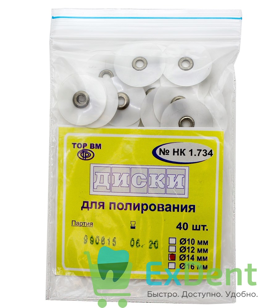 Купить Диски шлифовальные с металлической втулкой белые, для полирования, 14 мм (40 шт) произведенный компанией ТОР ВМ вы можете в ExDent.ru по цене 230руб.