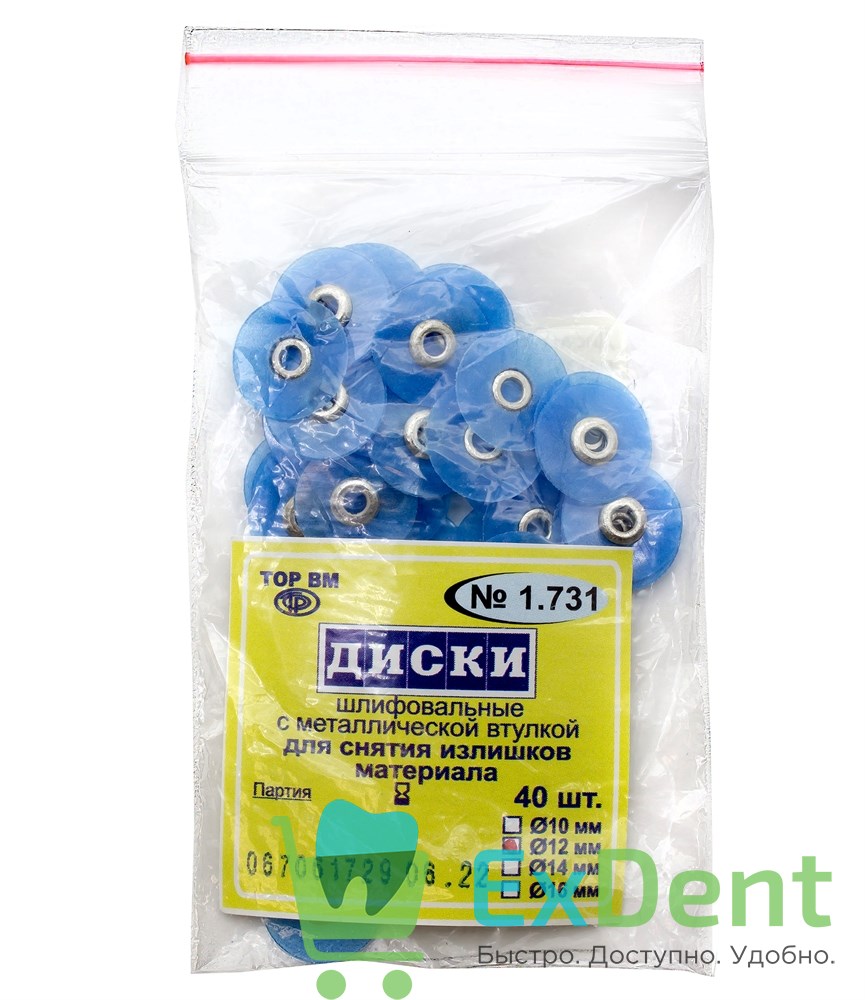 Купить Диски шлифовальные с металлической втулкой синие, для снятия излишков материала, 12 мм (40 шт) произведенный компанией ТОР ВМ вы можете в ExDent.ru по цене 230руб.