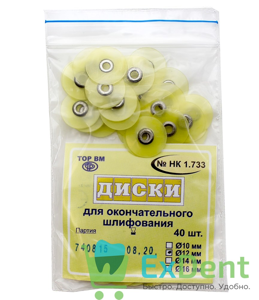 Купить Диски шлифовальные с металлической втулкой желтые, для окончательного шлифования, 12 мм (40 шт) произведенный компанией ТОР ВМ вы можете в ExDent.ru по цене 230руб.