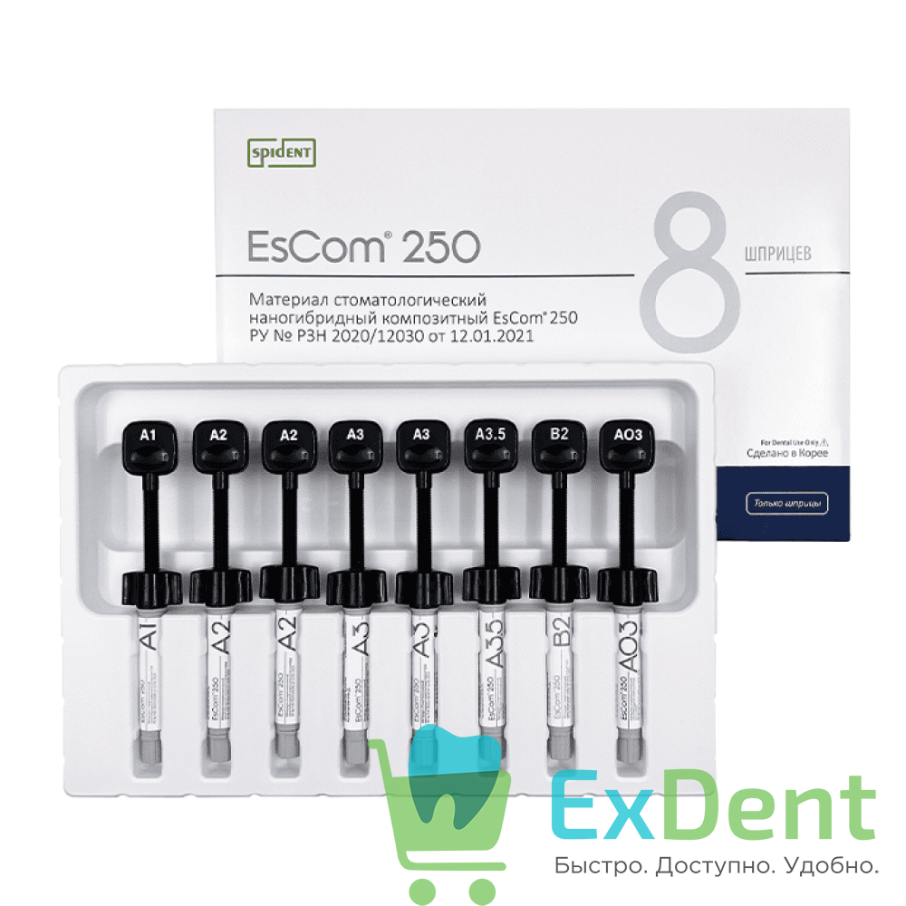 Купить EsCom (Еском) 250 набор (8 х 4 г A1/А2/А2/А3/A3/A3,5/B2/АO3) пломбировочный материал произведенный компанией Spident вы можете в ExDent.ru по цене 8 130руб.