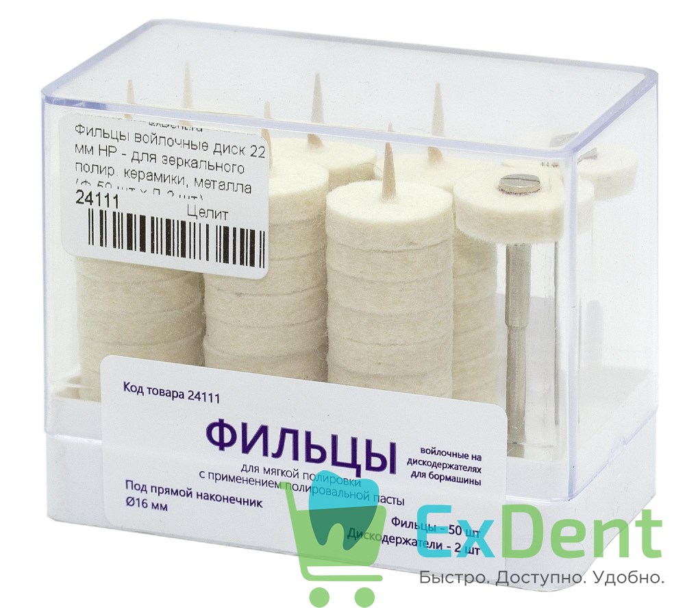 Купить Фильцы войлочные диск 22 мм HP - для зеркального полир. керамики, металла (Ф-50 шт х Д-2 шт) произведенный компанией Целит вы можете в ExDent.ru по цене 0руб.