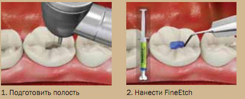FineEtch легко наносится и подготовляет эмаль зуба к дальнейшей обработке, смывается направленной струей воды под давлением. Вязкая консистенция геля оптимальна для беспрепятственного и точного наложения. Состав не испаряется. Протравливание дентина посредством FineEtch обеспечивает хорошую сцепку зубных тканей с композитными материалами в ходе реставрационных работ.