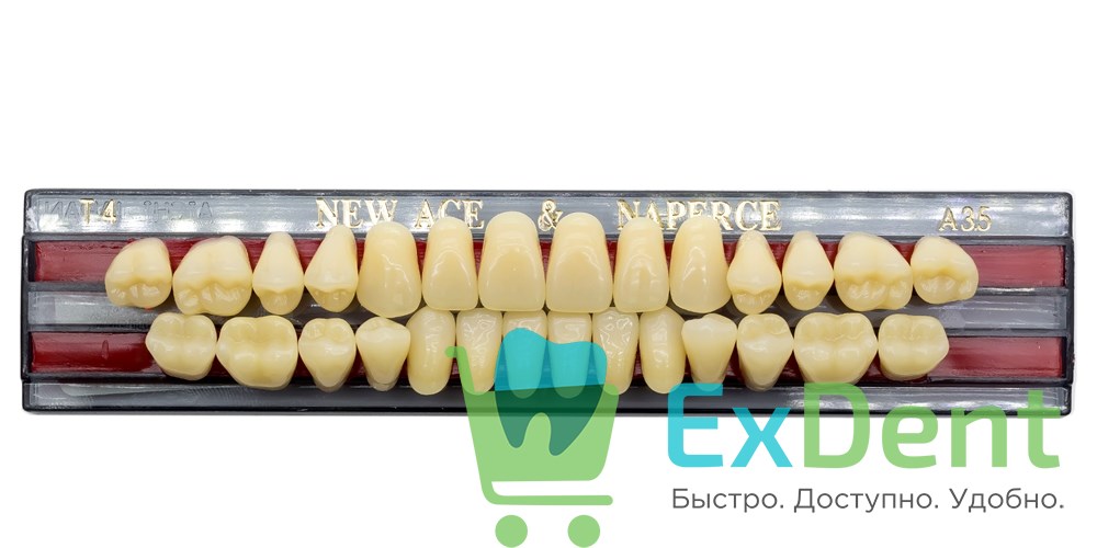 Купить Гарнитур акриловых зубов A3,5, T4, Naperce и New Ace (28 шт) произведенный компанией YAMAHACHI вы можете в ExDent.ru по цене 500руб.