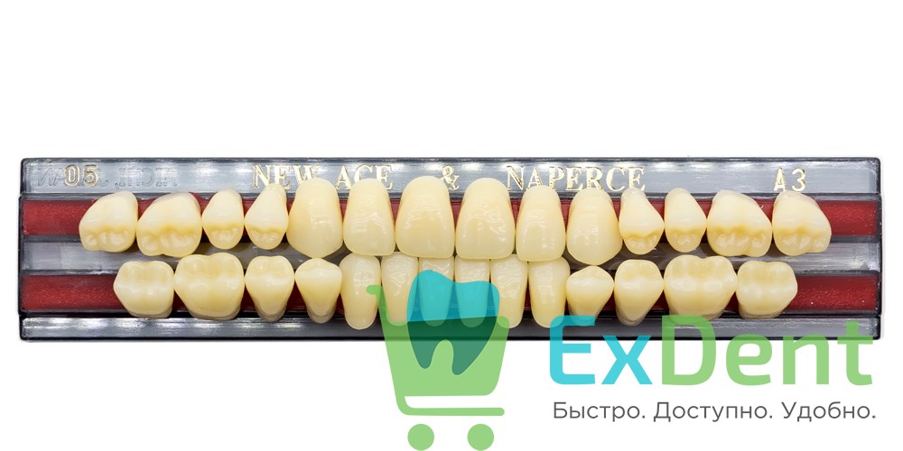 Купить Гарнитур акриловых зубов A3, O5, Naperce и New Ace (28 шт) произведенный компанией YAMAHACHI вы можете в ExDent.ru по цене 500руб.