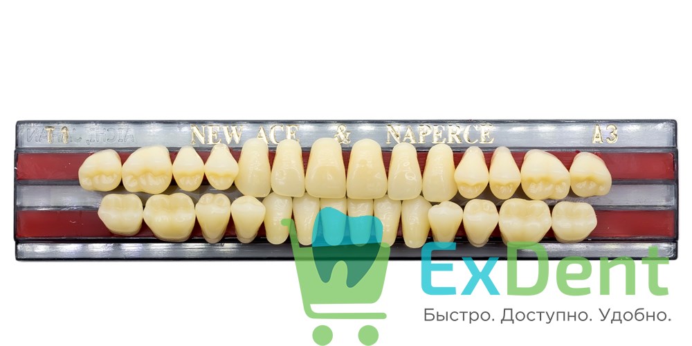 Купить Гарнитур акриловых зубов A3, T1, Naperce и New Ace (28 шт) произведенный компанией YAMAHACHI вы можете в ExDent.ru по цене 480руб.