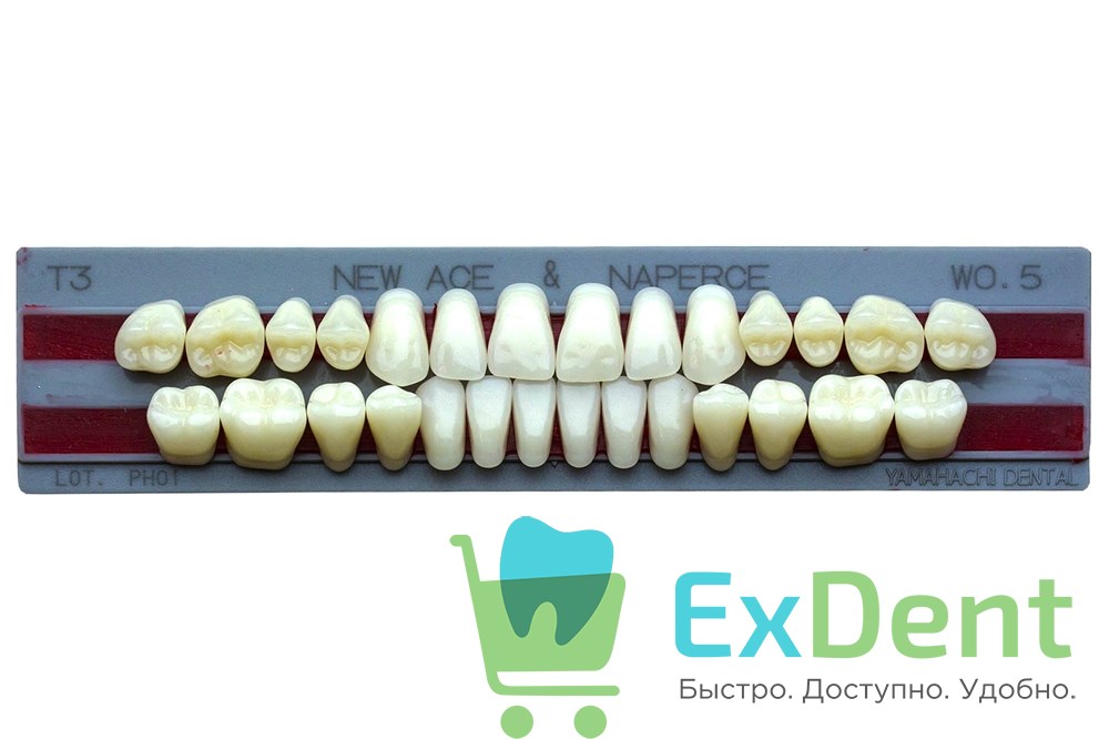 Купить Гарнитур акриловых зубов W0.5, T3, Naperce и New Ace (28 шт) произведенный компанией YAMAHACHI вы можете в ExDent.ru по цене 500руб.