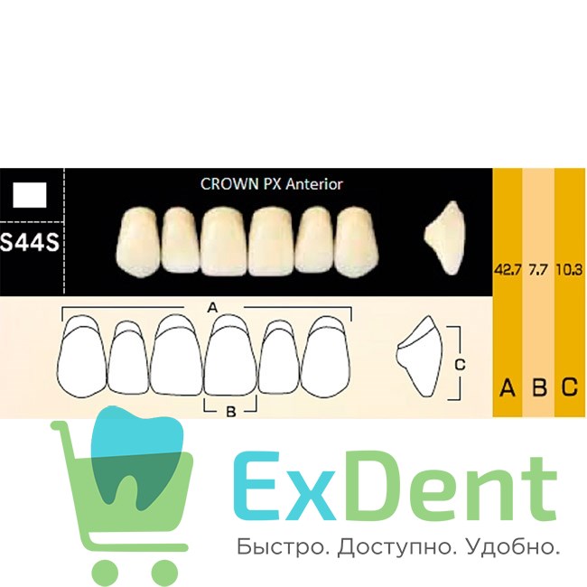 Crown PX Anteriors, фасон S44S, цвет A2 — зубы композитные трёхслойные, фронтальные, верхние на планке от производителя Yamahachi