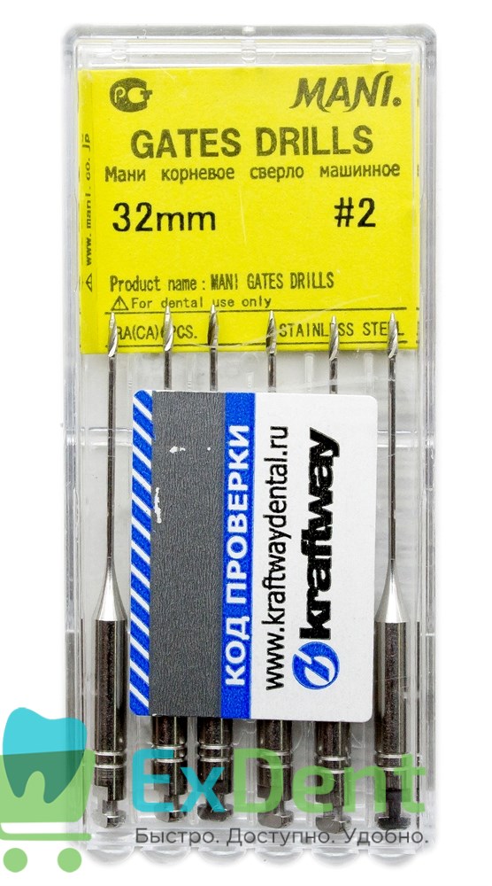 Купить Gates №2, 32мм, Mani, бор, корневое сверло, машинное (6 шт) произведенный компанией Mani вы можете в ExDent.ru по цене 1 060руб.