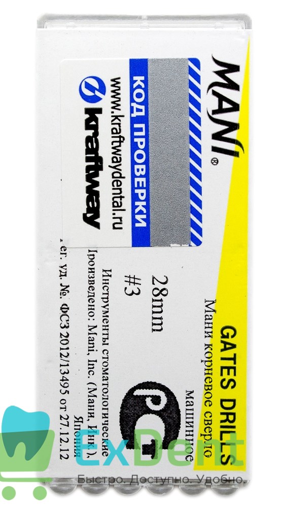 Купить Gates №3, 28 мм, Mani, бор, корневое сверло, машинное (6 шт) произведенный компанией Mani вы можете в ExDent.ru по цене 1 060руб.