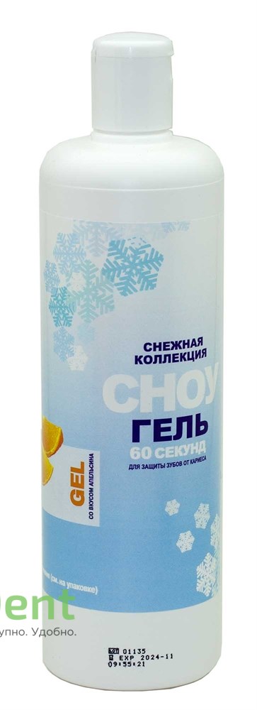 СНОУ ГЕЛЬ нейтральный, представляет собой флуоран фосфата (APF) и содержит 1,23% ионов фторида во фториде натрия с кислотностью (PH)7, которая обеспечивает быстрое и эффективное поглощение фторида всего за 60 секунд.