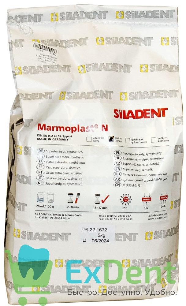 Купить Гипс суперпрочный Marmoplast N, 4 класса, абрикосовый (5 кг) произведенный компанией Siladent вы можете в ExDent.ru по цене 2 690руб.