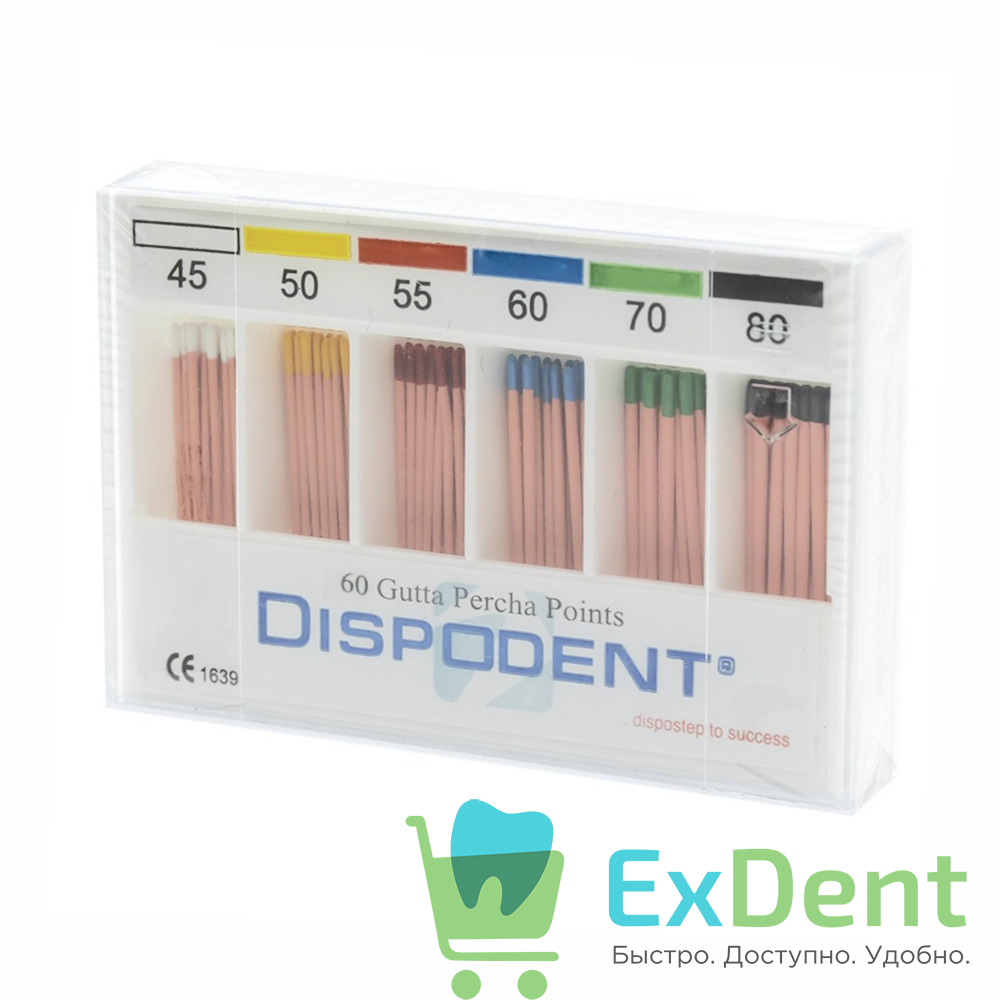 Купить Гуттаперчевые штифты 04 №45-80 Dispodent для пломбирования корневых каналов (60 шт) произведенный компанией Dispodent вы можете в ExDent.ru по цене 430руб.