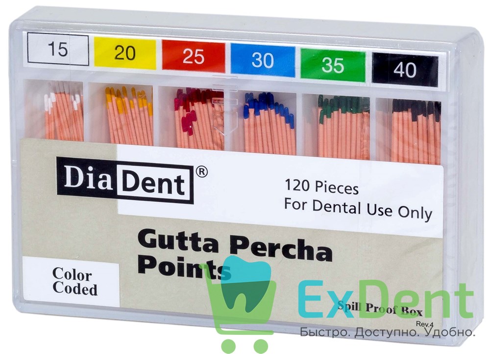 Купить Гуттаперчевые штифты 02 №15-40 DiaDent для пломбирования корневых каналов (120 шт) произведенный компанией DiaDent вы можете в ExDent.ru по цене 0руб.