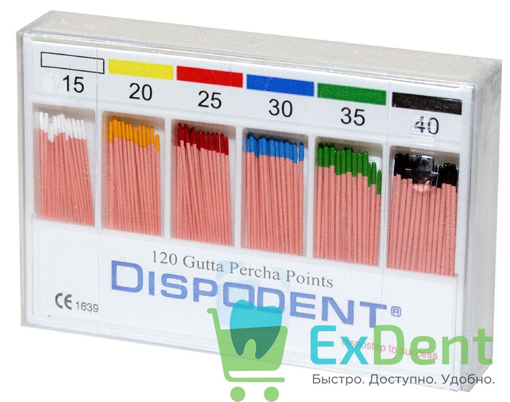 Купить Гуттаперчевые штифты 02 №15-40 Dispodent - для пломбирования корневых каналов (120 шт) произведенный компанией Dispodent вы можете в ExDent.ru по цене 250руб.