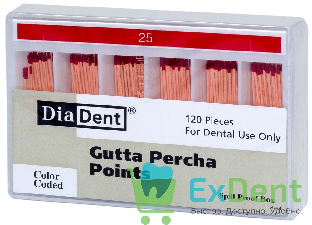 Купить Гуттаперчевые штифты 02 №25 DiaDent для пломбирования корневых каналов (120 шт) произведенный компанией DiaDent вы можете в ExDent.ru по цене 0руб.