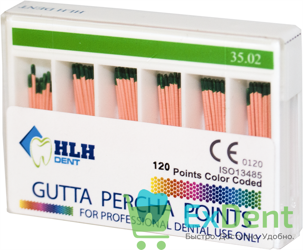 Гуттаперчевые штифты 02 №35 HLH - для пломбирования корневых каналов (120 шт)