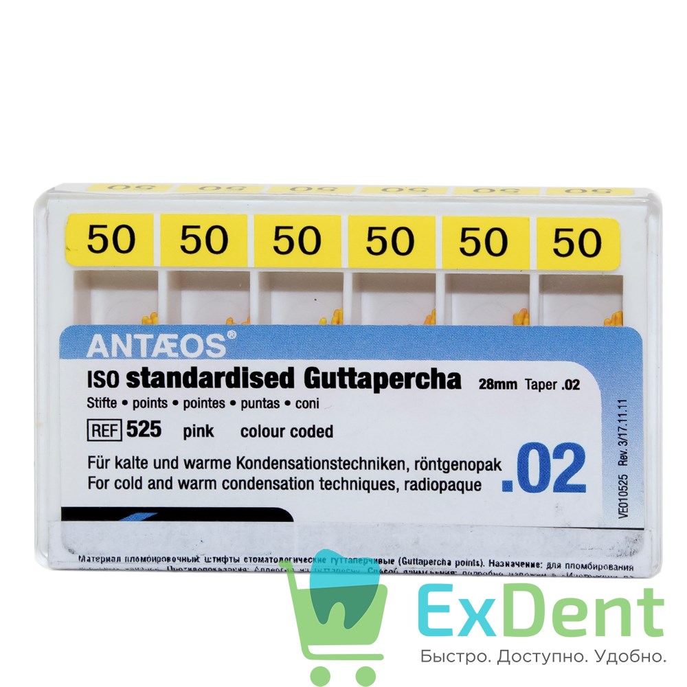 Купить Гуттаперчевые штифты 02 №50 VDW - для пломбирования корневых каналов (120 шт) произведенный компанией VDW вы можете в ExDent.ru по цене 0руб.