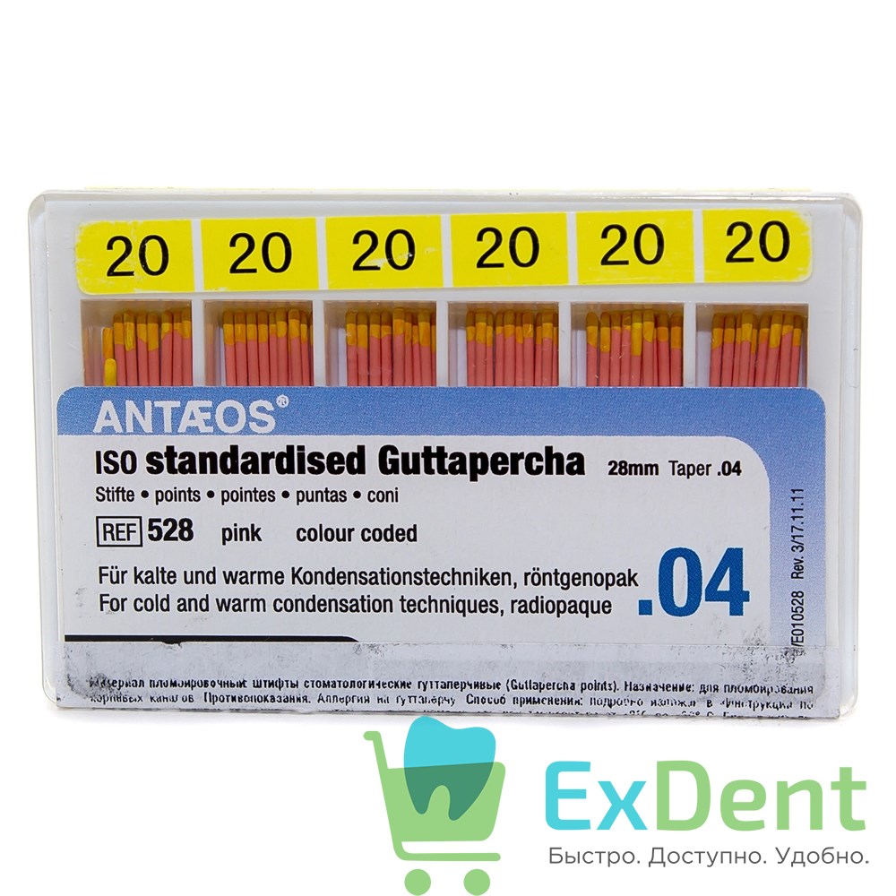 Купить Гуттаперчевые штифты 04 №20 VDW - для пломбирования корневых каналов (60 шт) произведенный компанией VDW вы можете в ExDent.ru по цене 0руб.