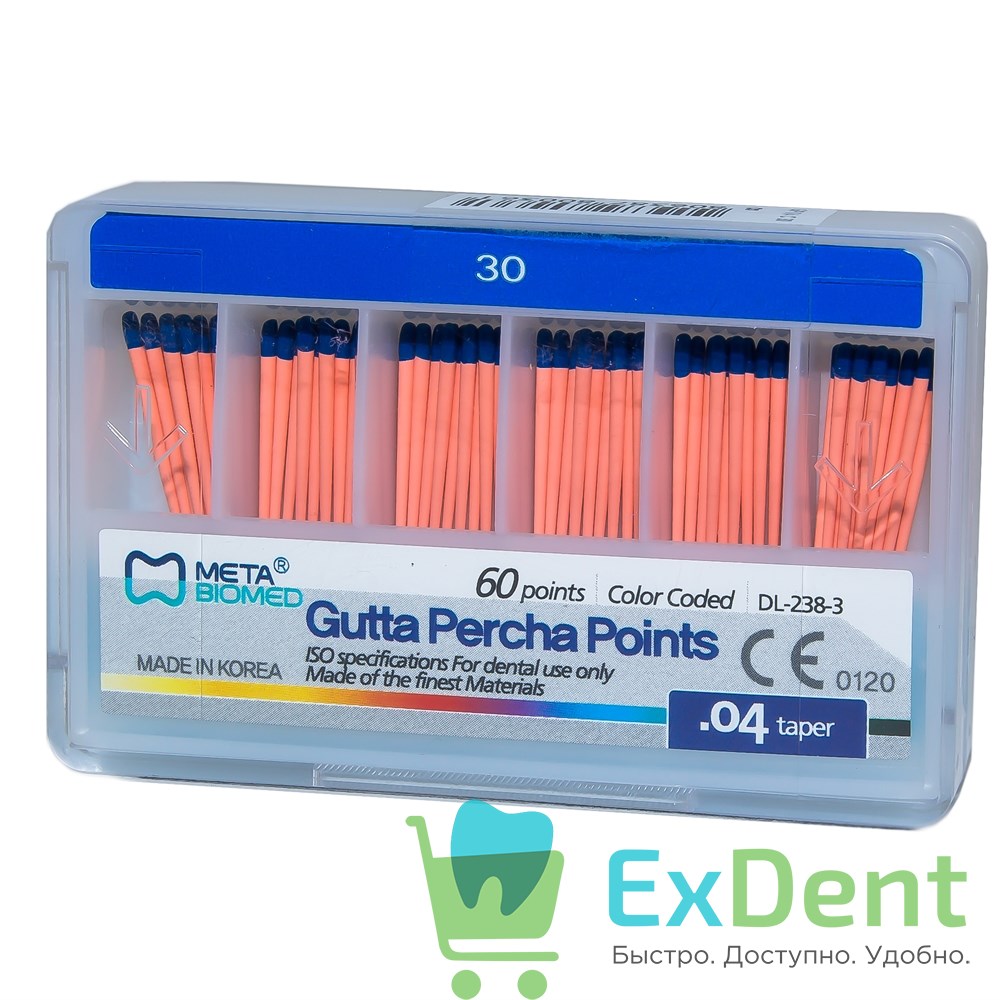 Гуттаперчевые штифты 04 №30 Meta - для пломбирования корневых каналов (60 шт)