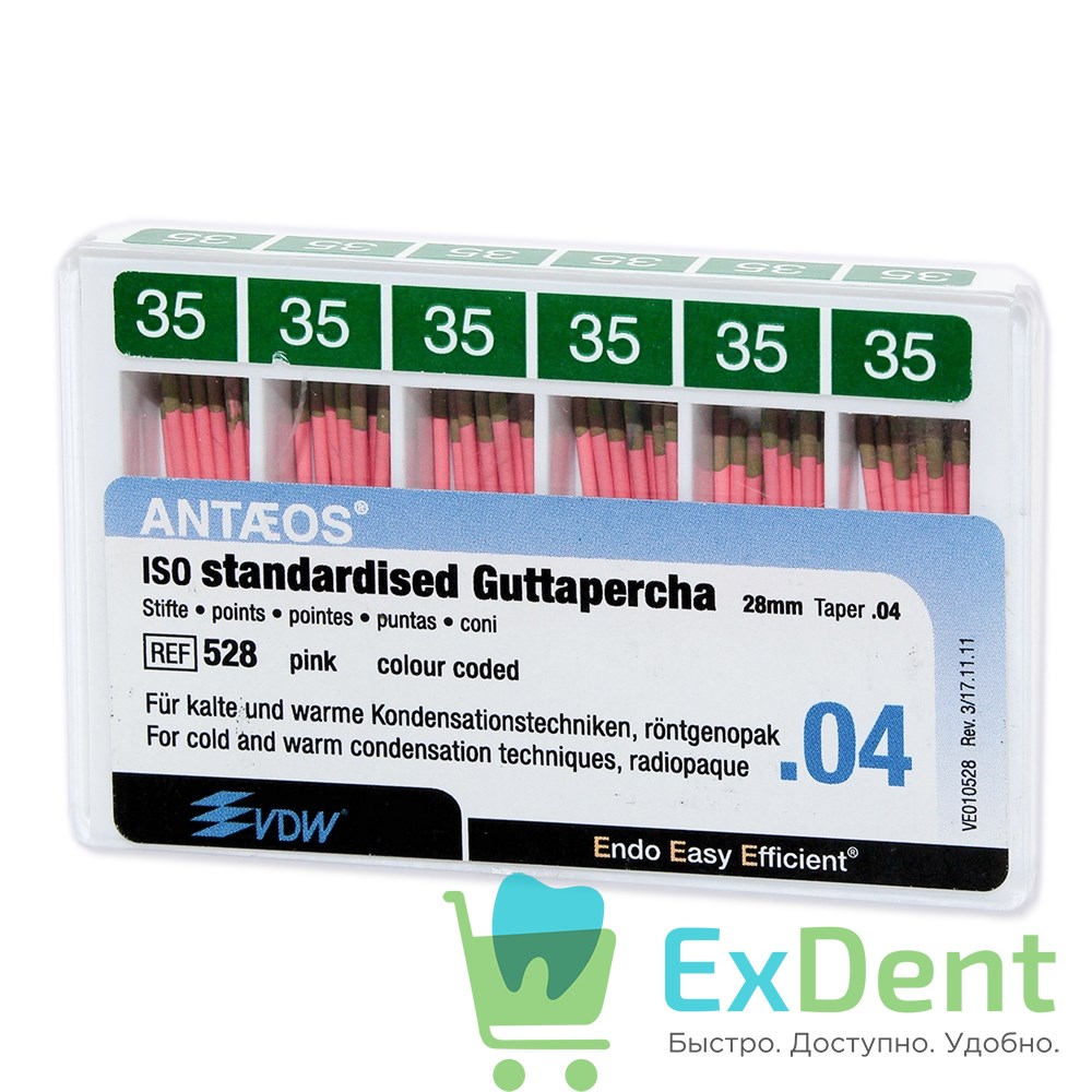 Купить Гуттаперчевые штифты 04 №35 VDW - для пломбирования корневых каналов (60 шт) произведенный компанией VDW вы можете в ExDent.ru по цене 0руб.