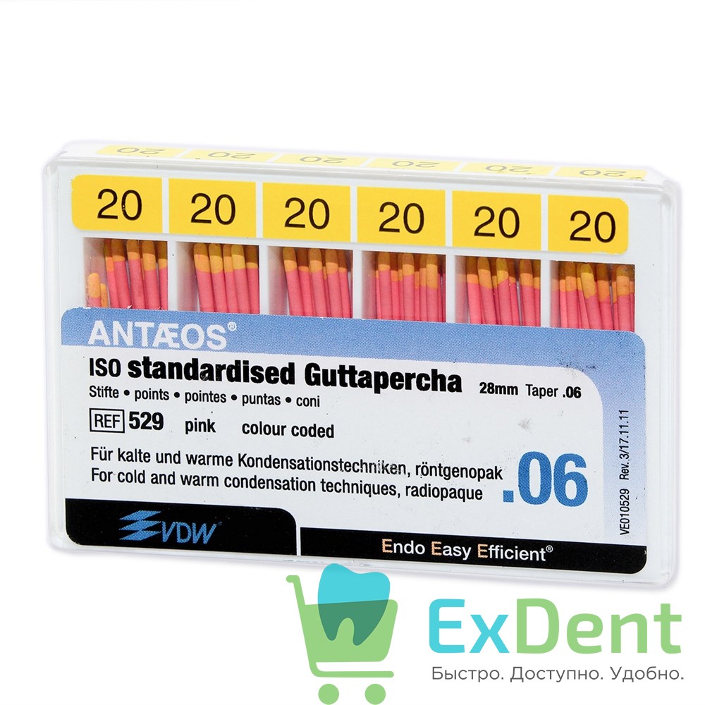 Купить Гуттаперчевые штифты 06 №20 VDW - для пломбирования корневых каналов (60 шт) произведенный компанией VDW вы можете в ExDent.ru по цене 0руб.