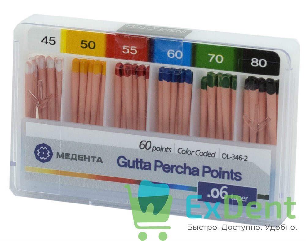 Купить Гуттаперчевые штифты 06 №45-80 Meta - для пломбирования корневых каналов (60 шт) произведенный компанией META вы можете в ExDent.ru по цене 0руб.