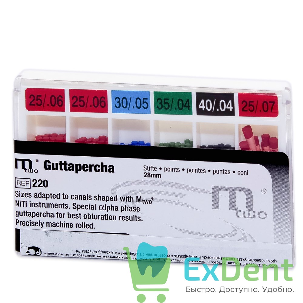 Купить Гуттаперчевые штифты под Mtwo ассорти - (20 х 025/06, 10 х 030/05, 035/04, 040/04, 025/07) (60 шт) произведенный компанией VDW вы можете в ExDent.ru по цене 0руб.