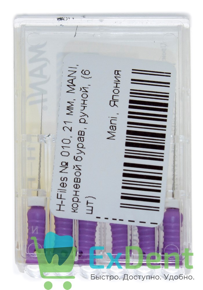 Купить H-Files №10, 21 мм, MANI, корневой бурав, ручной (6 шт) произведенный компанией Mani вы можете в ExDent.ru по цене 370руб.