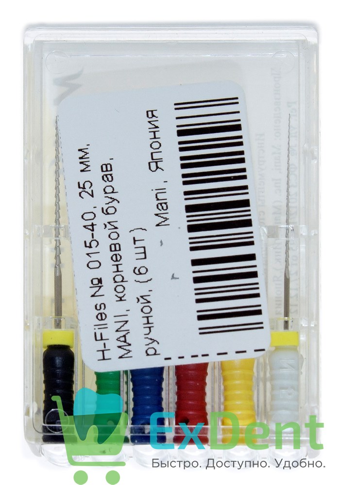 Купить H-Files №15-40, 25 мм, MANI, корневой бурав, ручной (6 шт) произведенный компанией Mani вы можете в ExDent.ru по цене 370руб.
