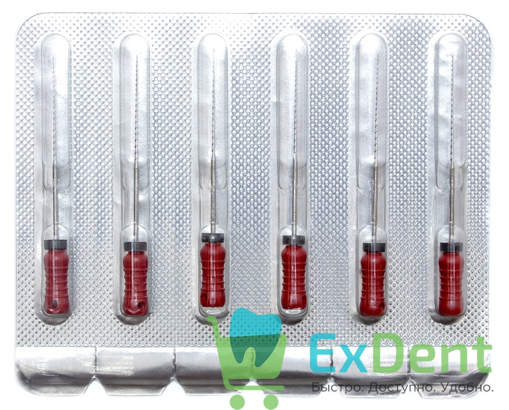 H-Files №25, 31 мм, Pro-Endo, расширитель канала, нержавеющая сталь, нестерильные (6 шт)