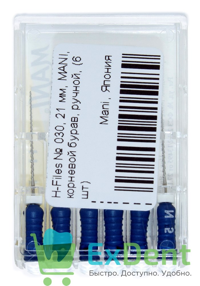 Купить H-Files №30, 21 мм, MANI, корневой бурав, ручной (6 шт) произведенный компанией Mani вы можете в ExDent.ru по цене 370руб.
