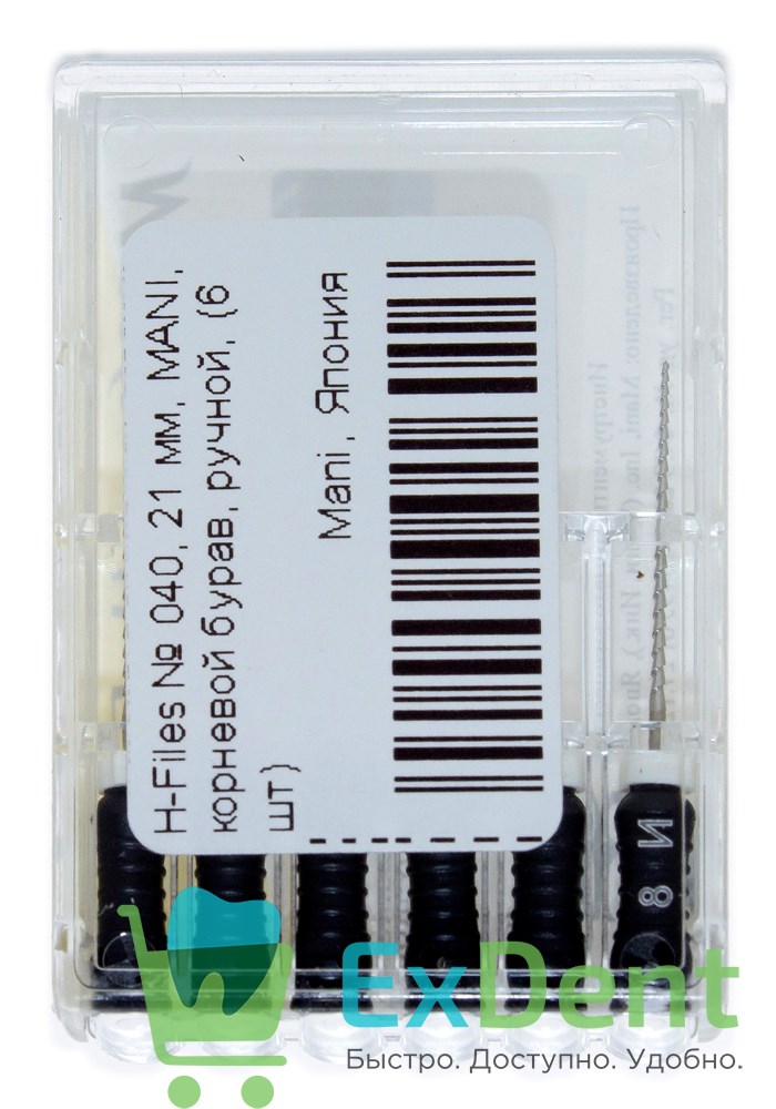Купить H-Files №40, 21 мм, MANI, корневой бурав, ручной (6 шт) произведенный компанией Mani вы можете в ExDent.ru по цене 370руб.