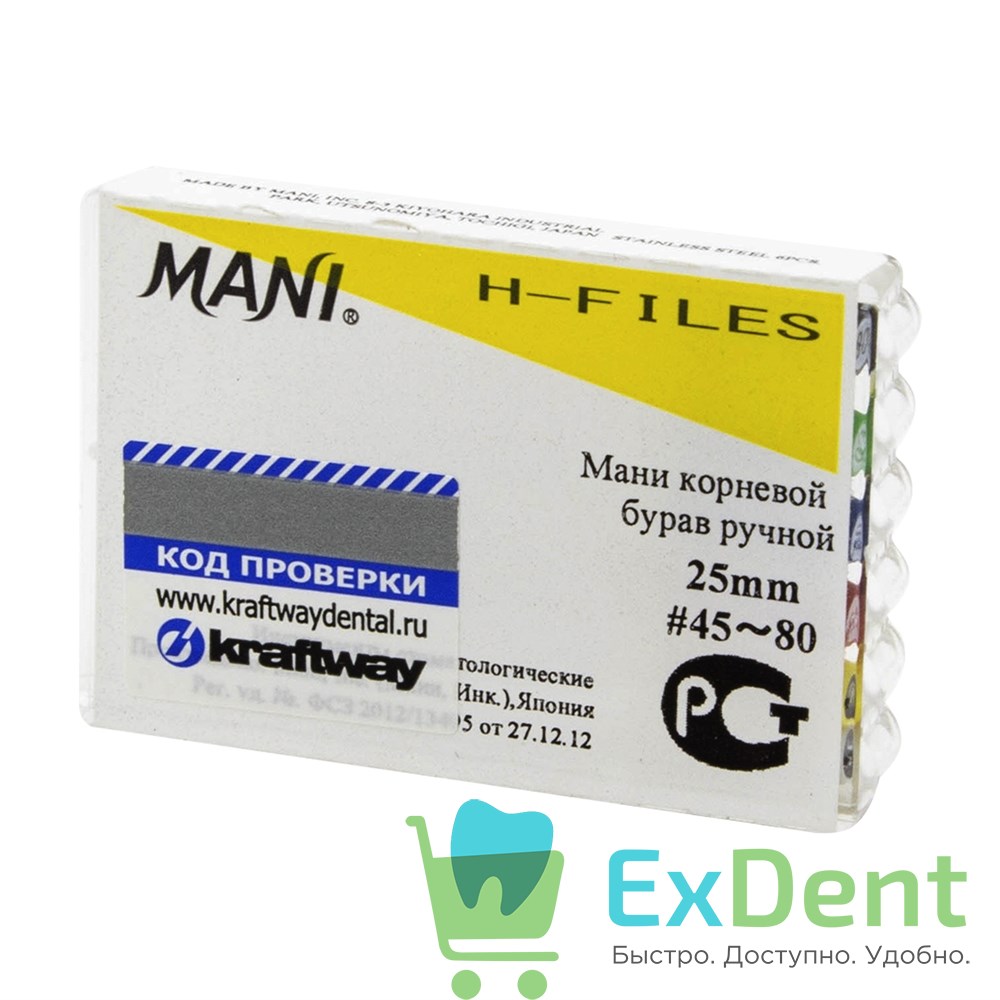 Купить H-Files №45-80, 25 мм, MANI, корневой бурав, ручной (6 шт) произведенный компанией Mani вы можете в ExDent.ru по цене 370руб.
